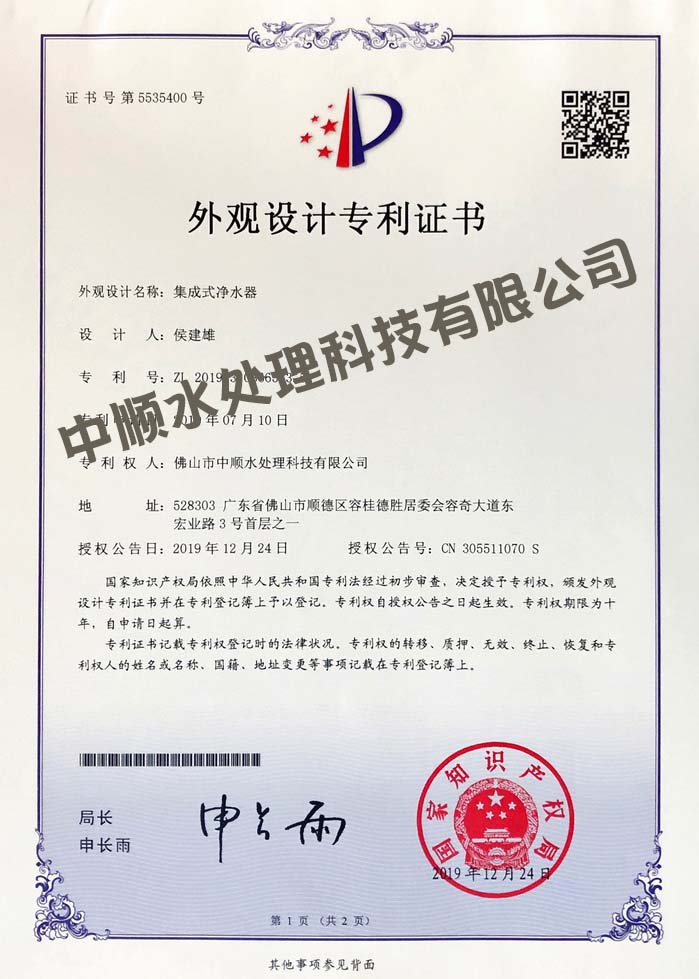 集成式一體化凈水器> -